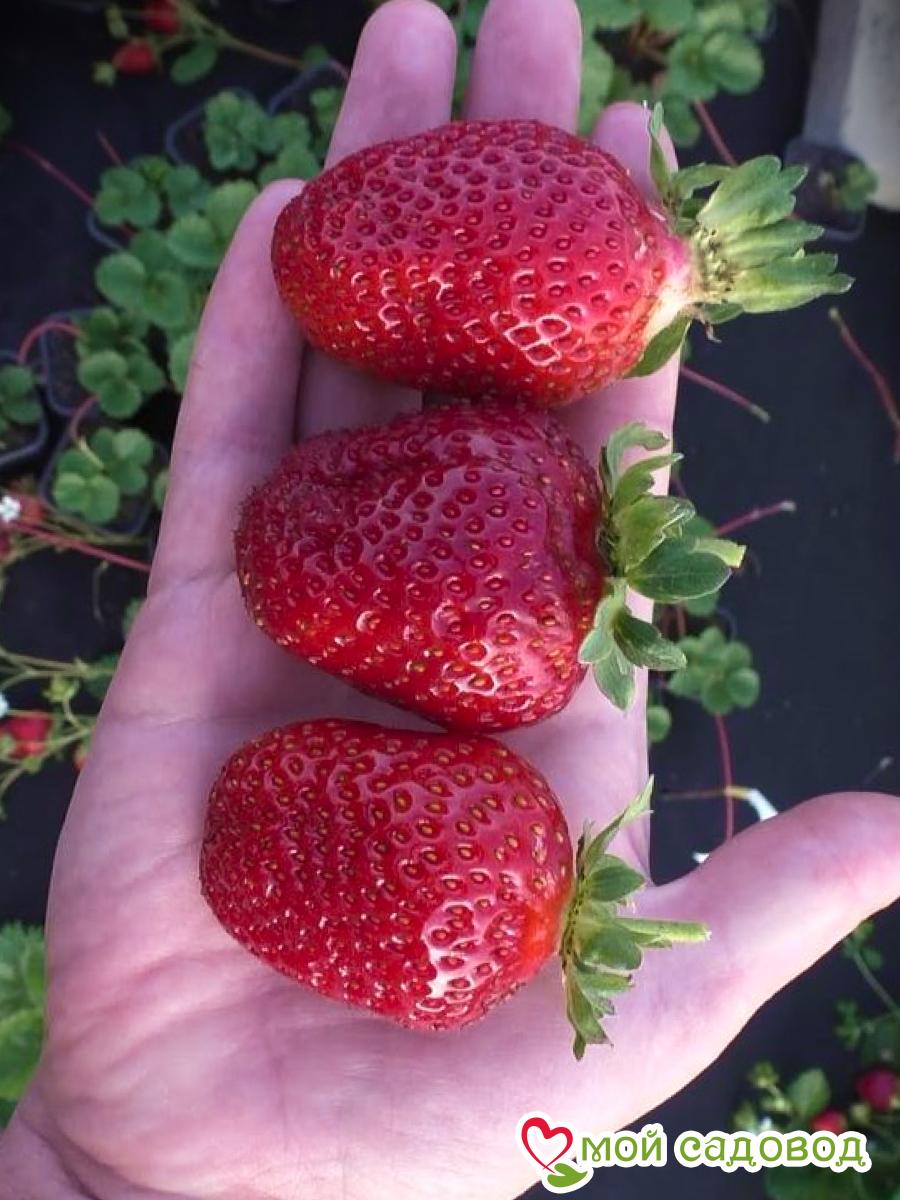 Клубника Диамант ремонтантная — крупноплодный сорт нейтрального светового дня, с крупными, удлиненными блестящими ягодами оранжево-красного цвета. Средний вес ягоды, при высокой агротехнике, достигает 30-32 г. Спелые плоды плотные, не слишком сочные, с высокими показателями сахаристости. Цвет мякоти достаточно светлый, поэтому ягоды этого сорта для переработки используются нечасто. Сорт пригоден для транспортировки на большие расстояния. Сорт формирует относительно высокорослые мощные кусты с хорошо развитой листовой розеткой. Соцветия размещаются строго над листьями. Сорт обладает высокой устойчивостью к поражению паутинным клещом, милдью, белой и красной пятнистостью листьев. На фазе активного плодоношения растения наблюдается выраженное формирование усов. Сорт можно выращивать как в открытом грунте, так и в контейнерах или кашпо. Посадка: осенью (с середины августа до середины октября) и ранней весной Освещение: яркий солнечный свет Почва: легкая – суглинок, супесь, чернозем или лесные, богатые органикой грунты с водородным показателем pH 5,7-6,2 Полив: утренний, с конца апреля – один раз в 10-12 дней, расходуя на каждый м² участка 10-12 л воды Подкормки: минимум три раза в год: ранней весной, в период бутонизации и в августе Обрезка: когда листья начнут желтеть, покрываться пятнами и сохнуть, их обрезают Размножение: усами (розетками), делением куста